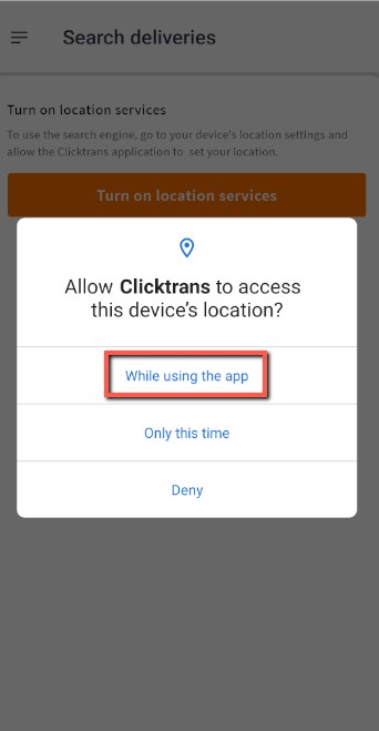 O Acompanhamento do Envio funcionará corretamente apenas se permitires que a app móvel Clicktrans aceda à localização do teu dispositivo. A app irá pedir-te as autorizações necessárias; só precisas de as confirmar. Abaixo encontrarás um guia para dispositivos Android e iOS.
